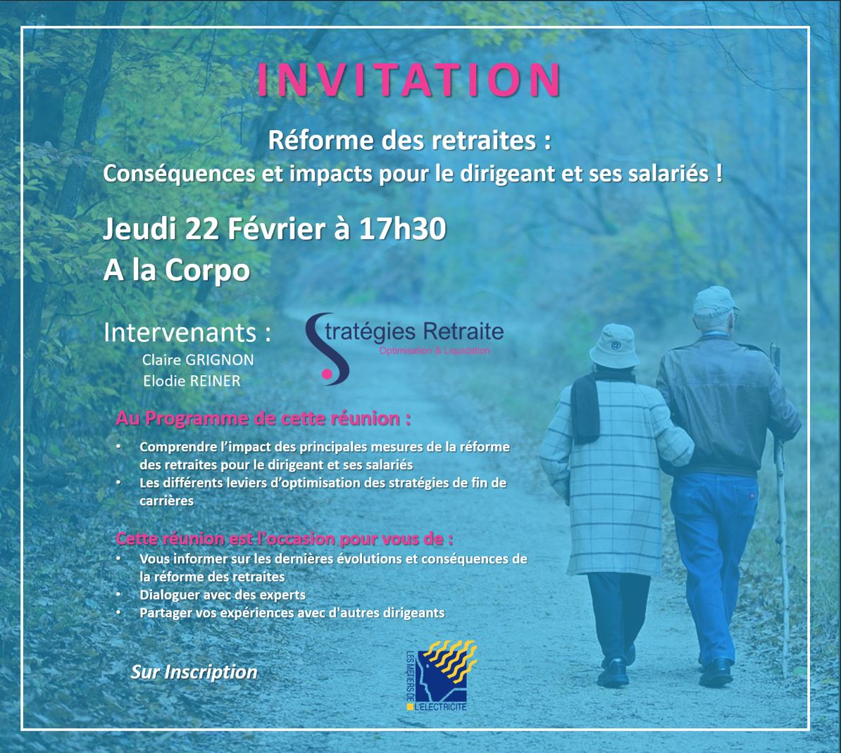! Réforme des retraites ! Conséquences et Impacts sur le dirigeant et ses salariés : Jeudi 22/02 à 17h30 à la Corpo !